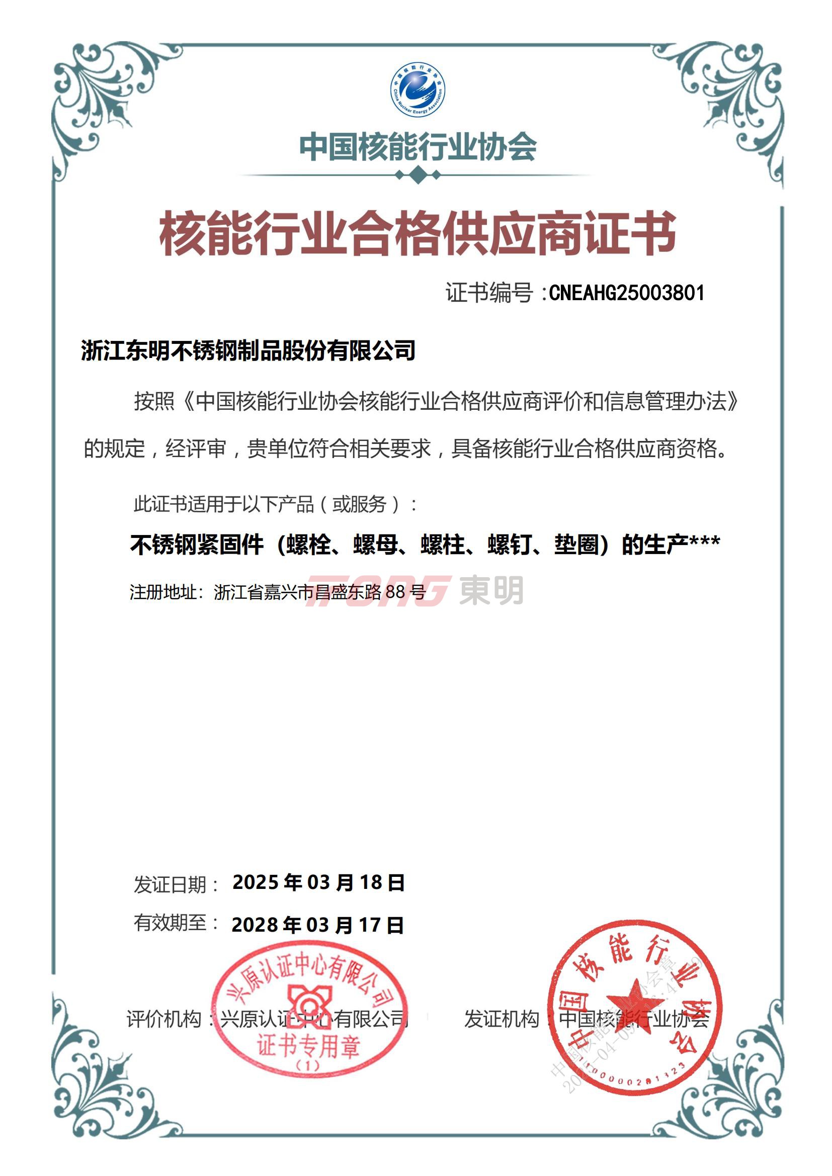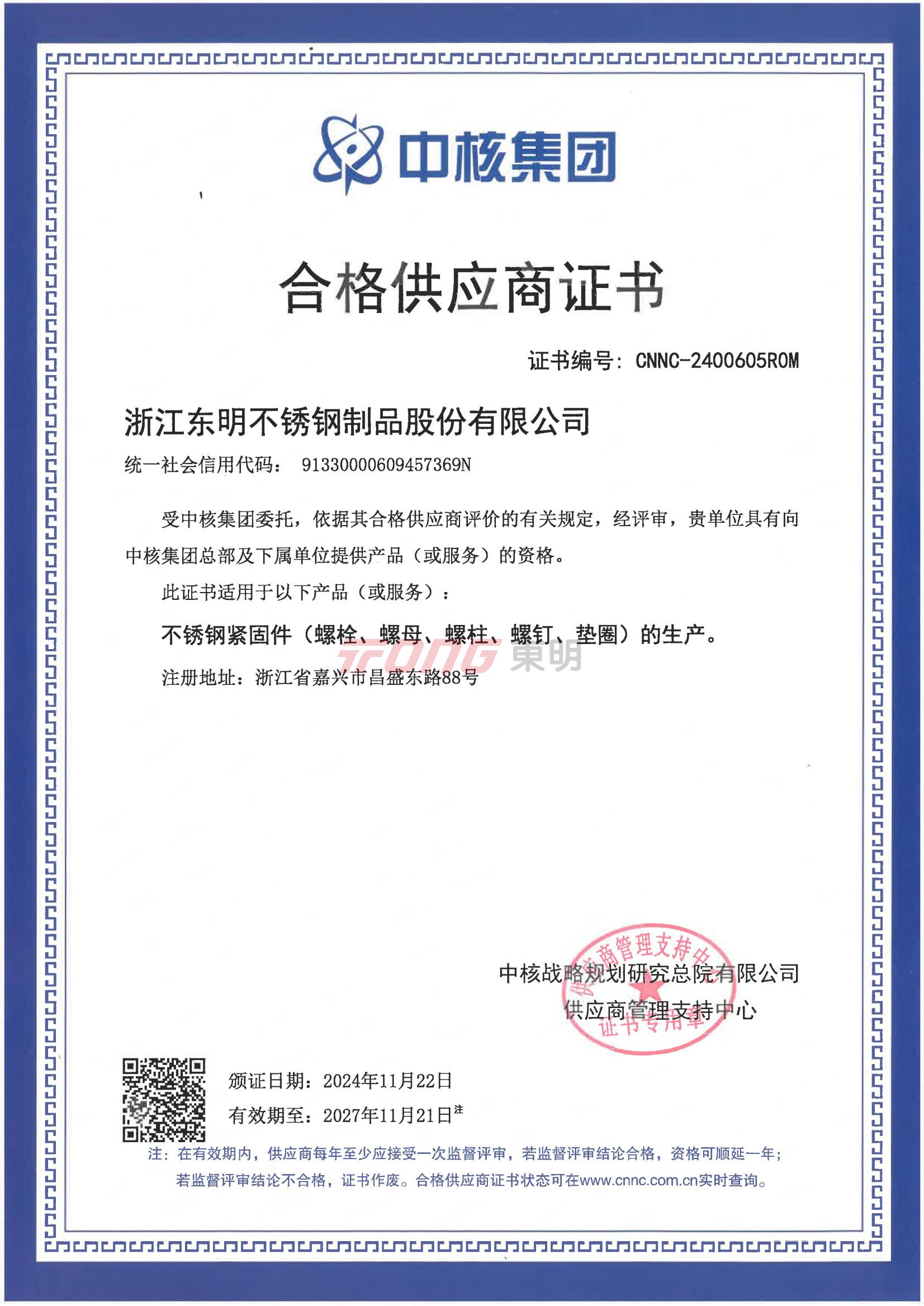 核能行業(yè)合格供應(yīng)商證書(shū)